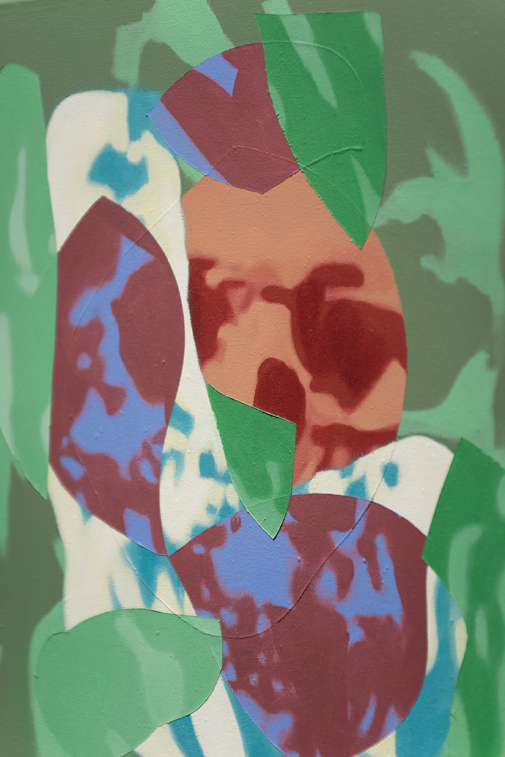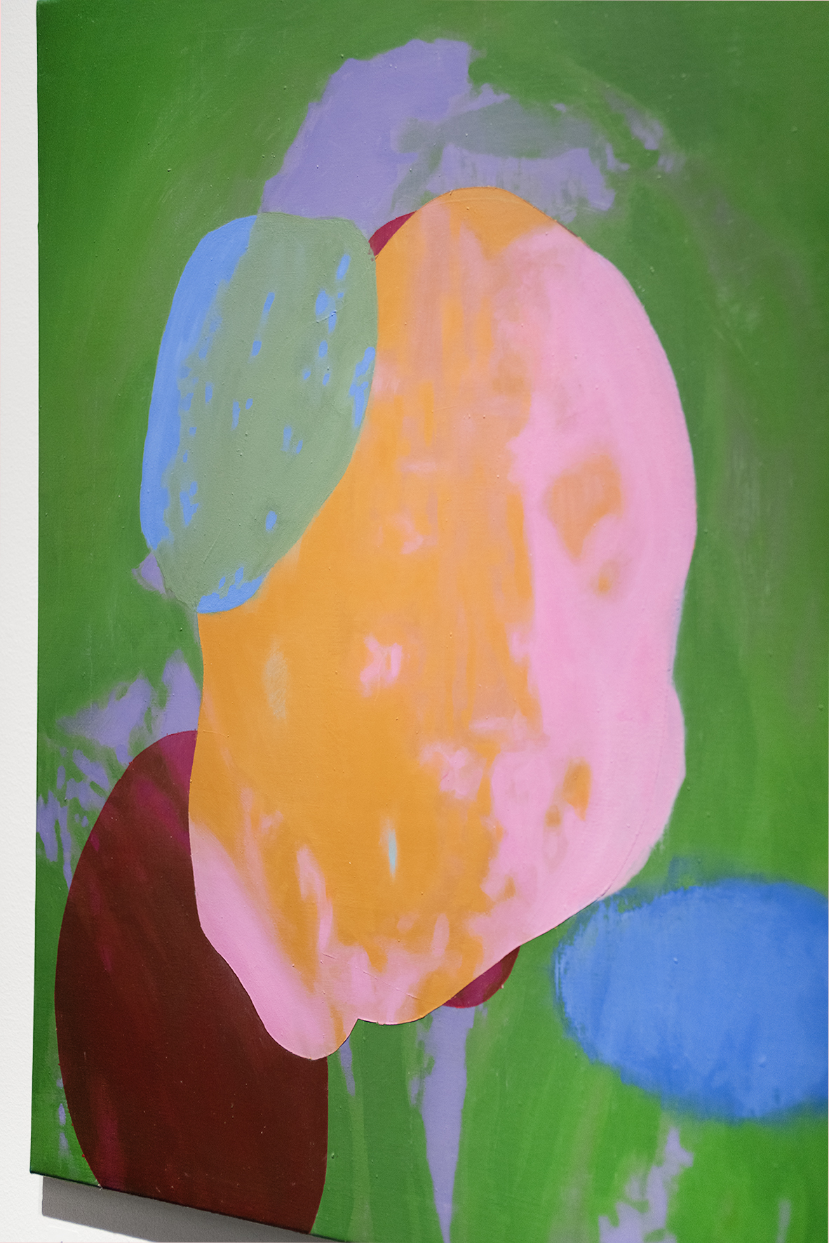Friendly Floatees 1, 2023. Cellulose and synthetic pigment on cotton, 60×50 cm