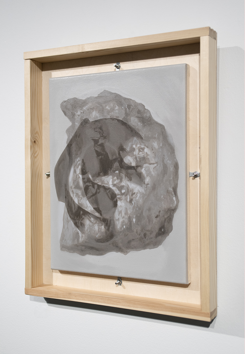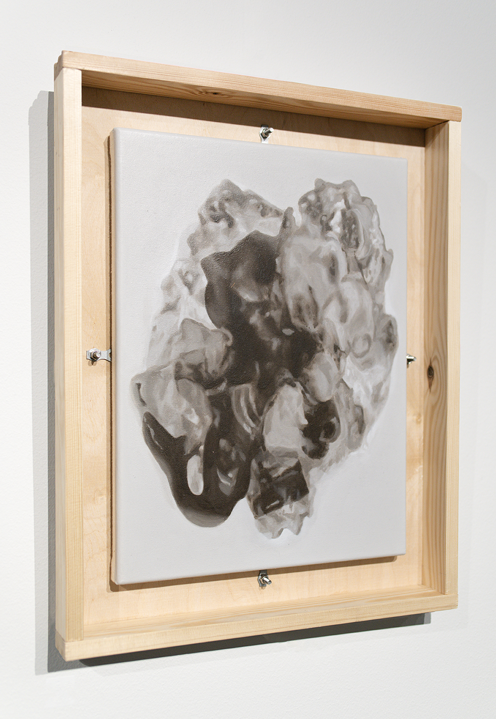 Mermaid’s Tears 6, 2022. Wood ash and walnut oil on canvas, 40×30 cm/ wooden case 51×40 cm.